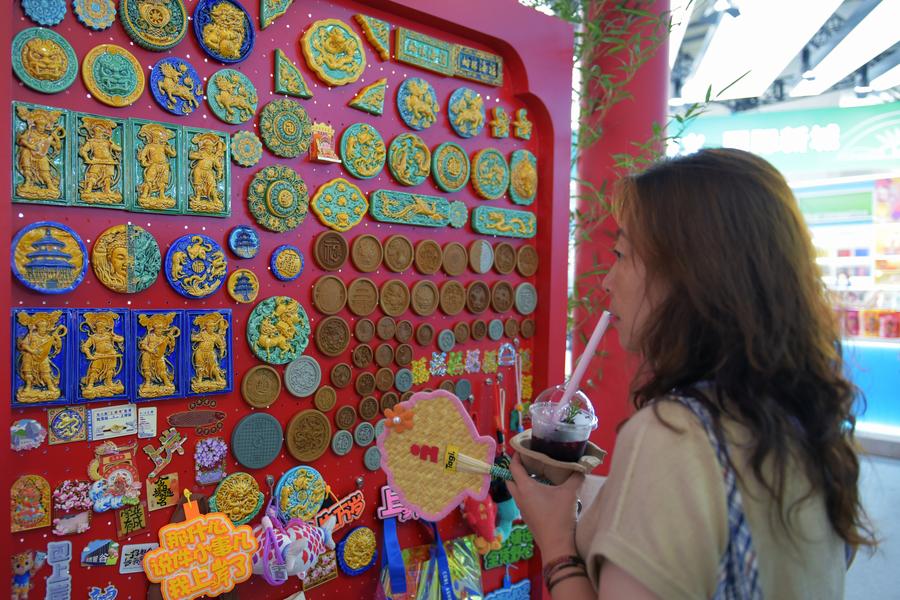 11日、文化・観光サービス展示エリアに出品された文化クリエーティブ製品。(北京=新華社記者/隋尚君)