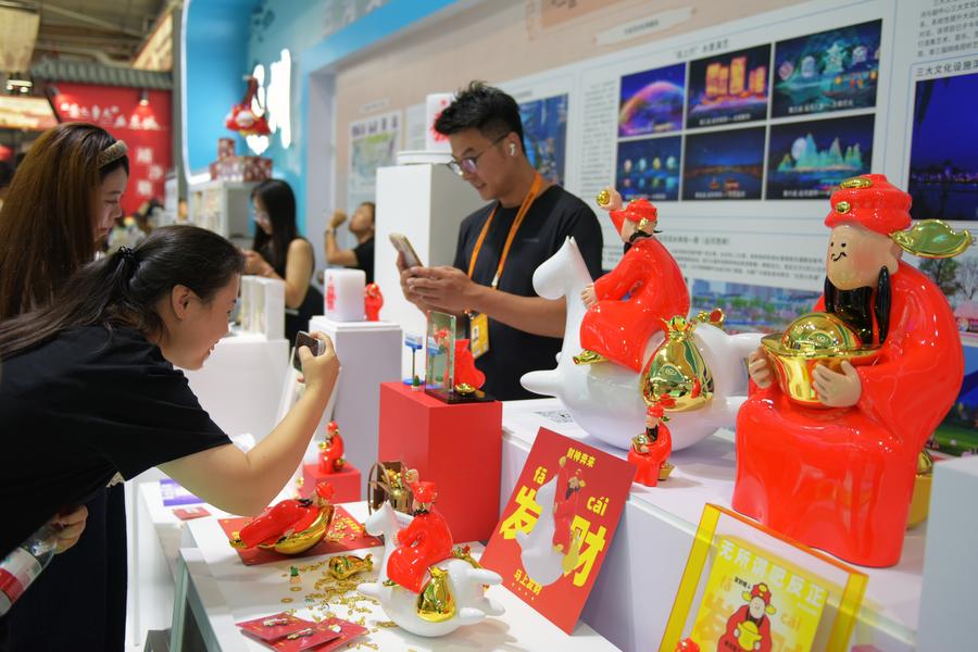 12日、文化・観光サービス展示エリアに出品された文化クリエーティブ製品。(北京=新華社記者/張新晶)
