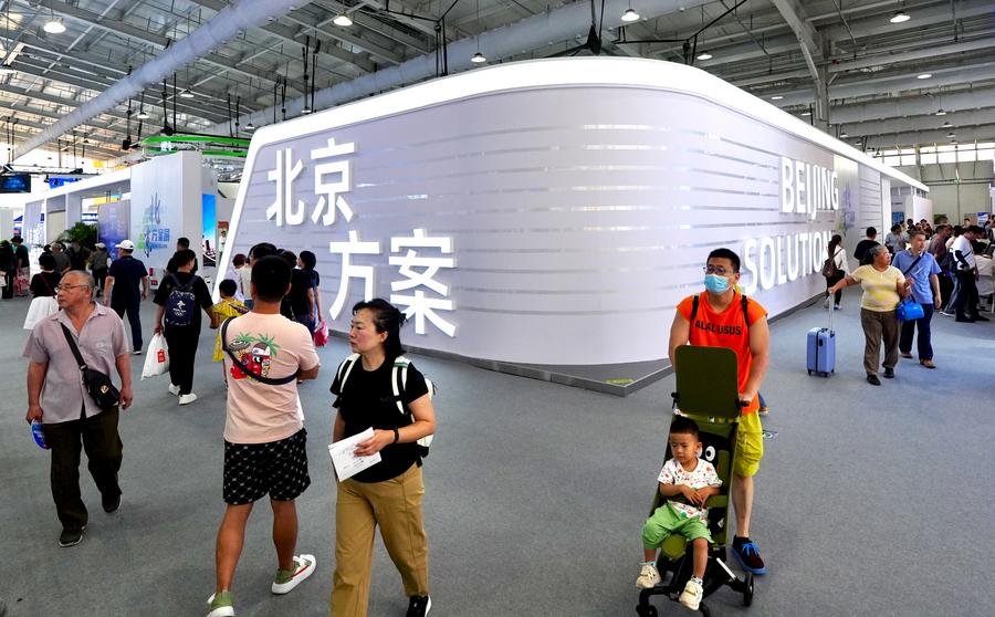 13日、中國國際サービス貿易交易會の會場を訪れた人點。(北京=新華社記者/徐欽)