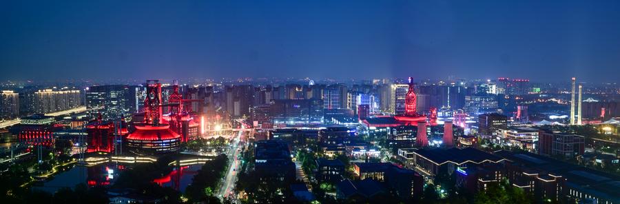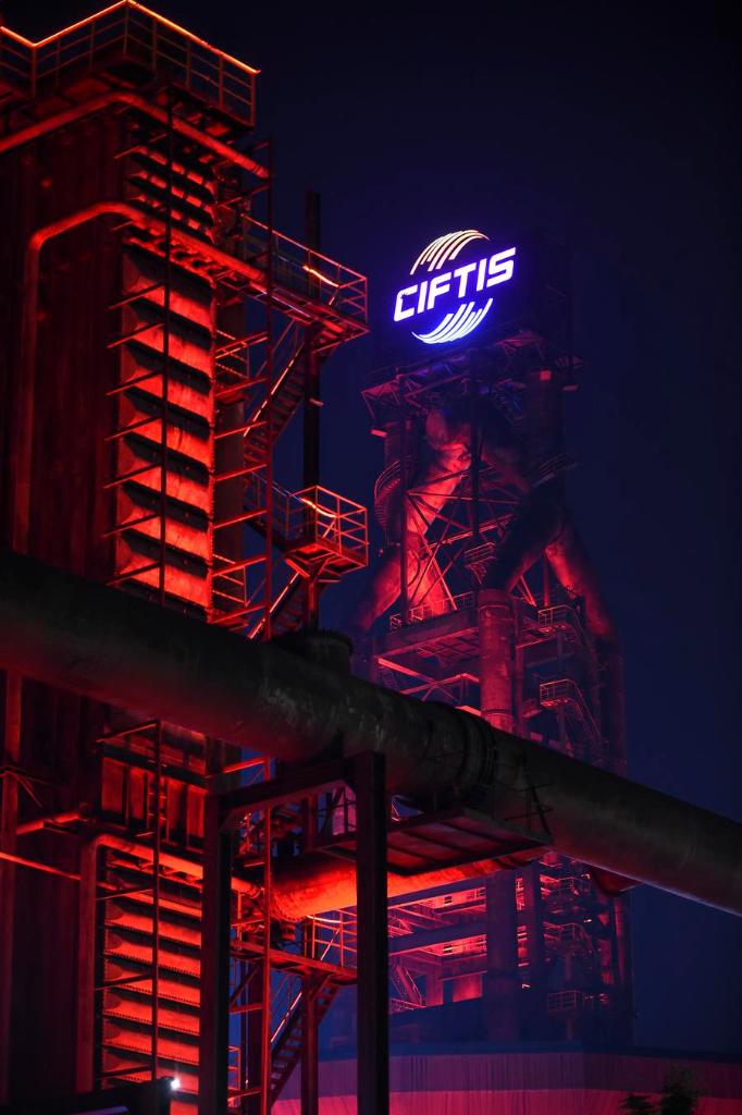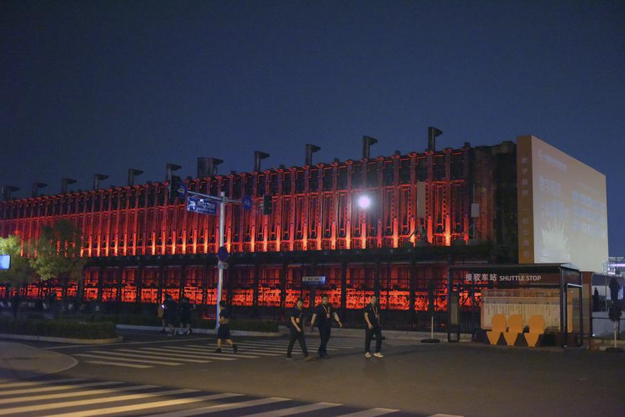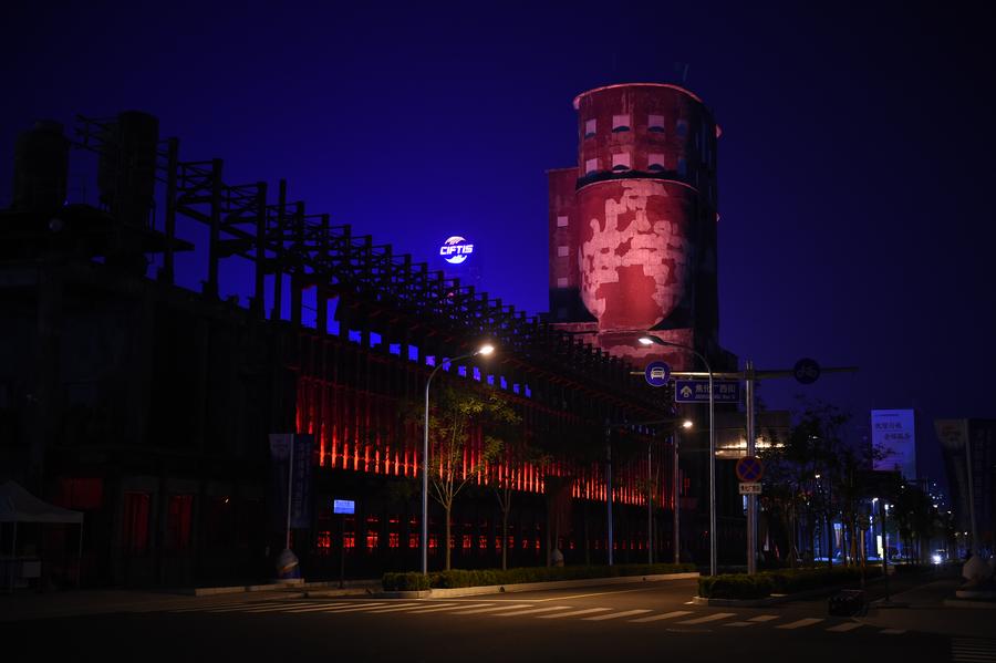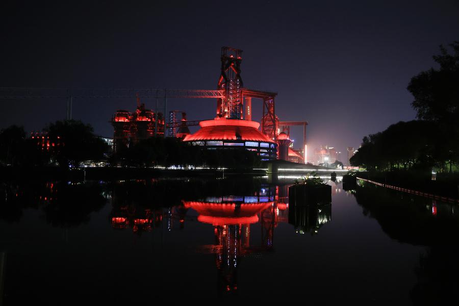 【新華社北京9月14日】中國北京市の首鋼園で10~14日、サービス産業の見本市「2025年中國國際サービス貿易交易會」が開かれた。夜になると、園內にある産業遺産が美しくライトアップされ、獨特の雰囲気を醸し出していた。