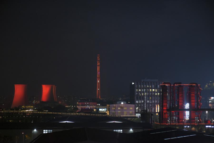 11日、首鋼園の夜景。(北京=新華社記者/張晨霖)