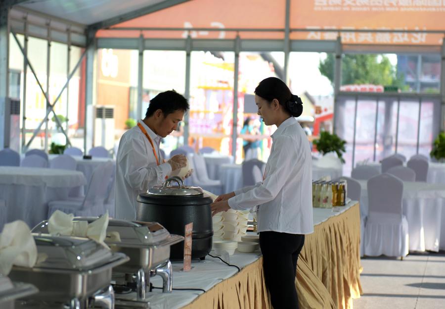 11日、2025年中國國際サービス貿易交易會のイートインスペースで働くスタッフ。(北京=新華社記者/張新晶)