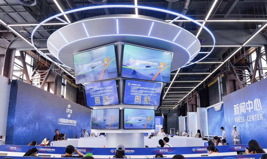 14日、2025年中國國際サービス貿易交易會のプレスセンター。(北京=新華社記者/徐欽)