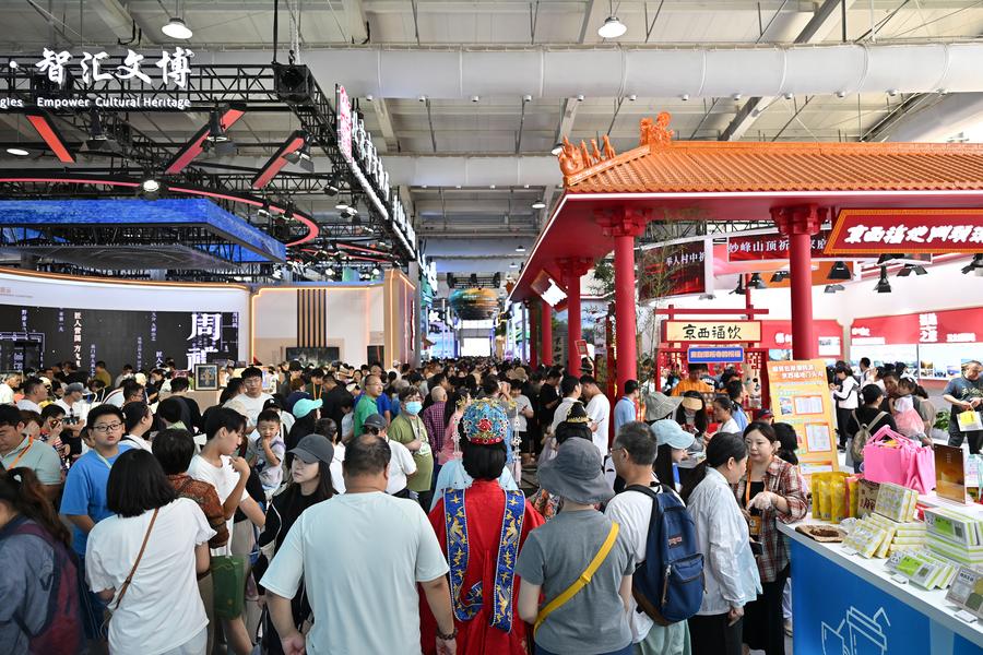14日、2025年中國國際サービス貿易交易會の文化観光サービス展示エリアを訪れた人たち。(北京=新華社記者/李鑫)