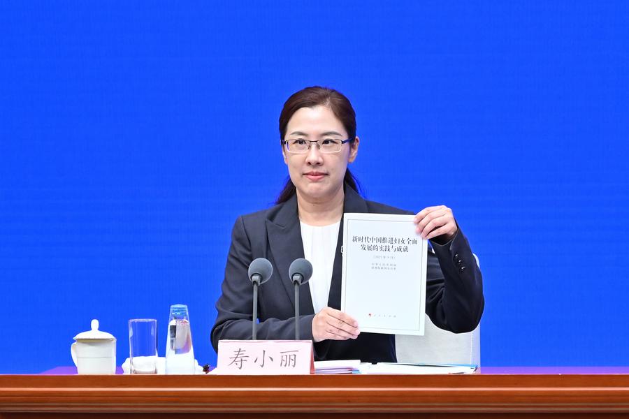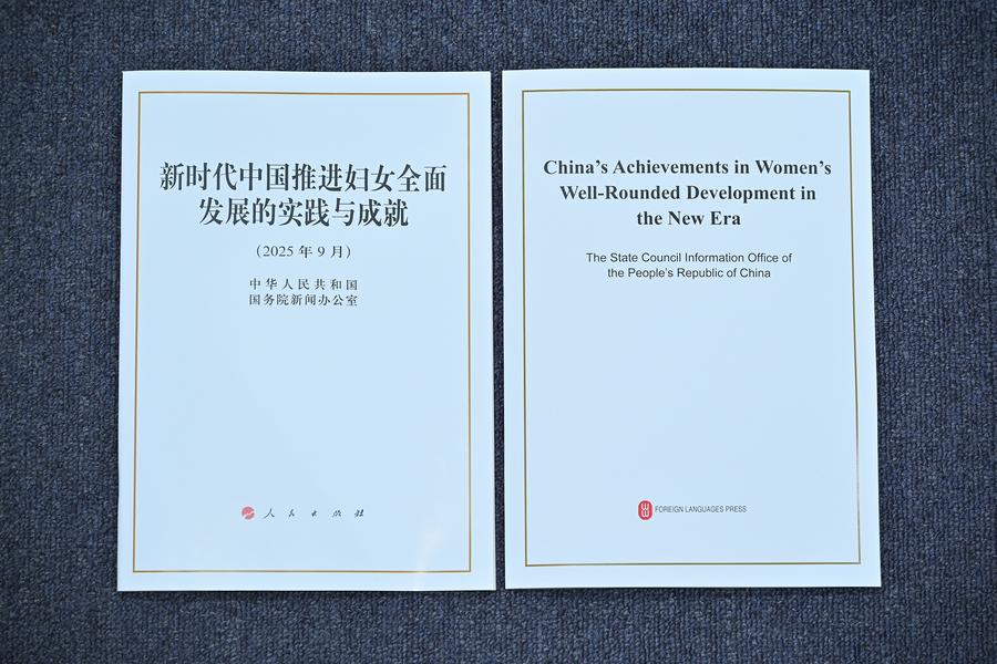 19日に発表された白書「新時代の中國における女性の全面的発展推進の実踐と成果」。(北京=新華社記者/李鑫)