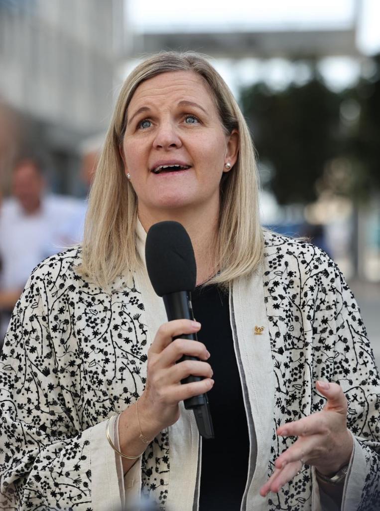 18日、選手村を視察し、報道陣の取材に応じるIOCのカースティ・コベントリー會長。(ミラノ=新華社記者/李京)