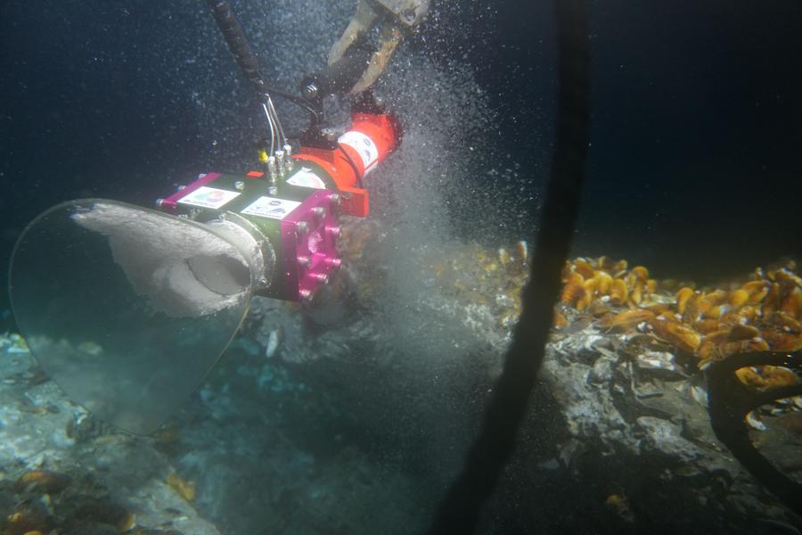 海底の冷水湧出域でのメタンハイドレート採取の様子。(9月18日撮影、広州=新華社配信)