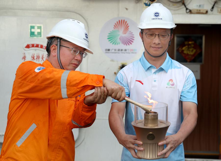【新華社広州10月10日】中國広東省広州市で9日、第15回全國運動會・第12回全國障害者スポーツ大會・第9回スペシャルオリンピックスの聖火採火式が行われた。聖火の元となる火は、深さ1500メートル以上の海底にあるメタンハイドレートを使って得られたという。