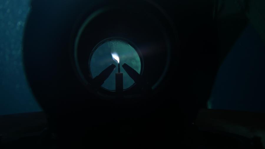 海底で行われたメタンガスを用いた種火の點火。(9月18日撮影、広州=新華社配信)