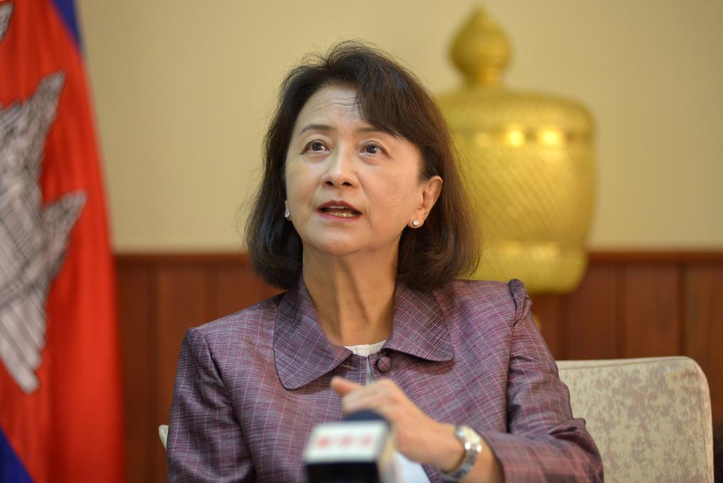 新華社の取材に応じるカンボジアのイン・カンタパビ女性問題擔當相。(9月26日撮影、プノンペン=新華社配信)
