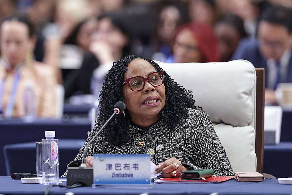 13日、世界女性サミットの全體會議であいさつするジンバブエの代表。(北京=新華社記者/張玉薇)