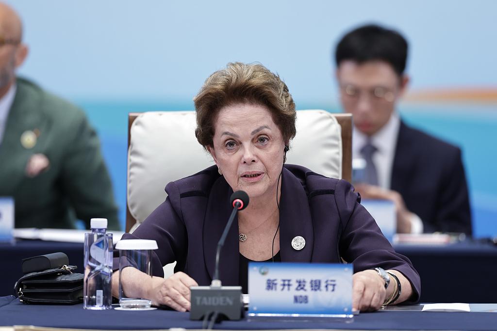 13日、世界女性サミットの全體會議であいさつする新開発銀行(NDB、本部・上海市)の代表。(北京=新華社記者/張玉薇)