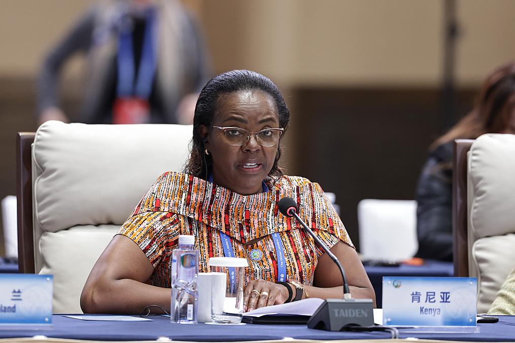 13日、世界女性サミットの全體會議であいさつするケニアの代表。(北京=新華社記者/張玉薇)