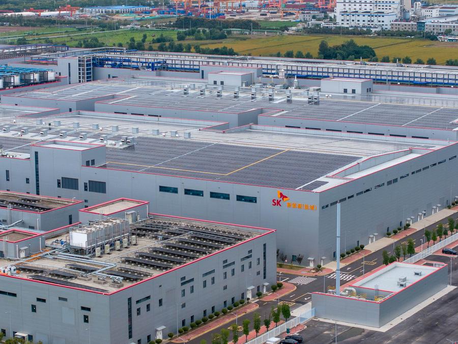 中韓(塩城)産業パークにあるSKグループ新エネルギー2期の車載電池生産拠點。(10月16日、ドローンから、塩城=新華社記者/李博)