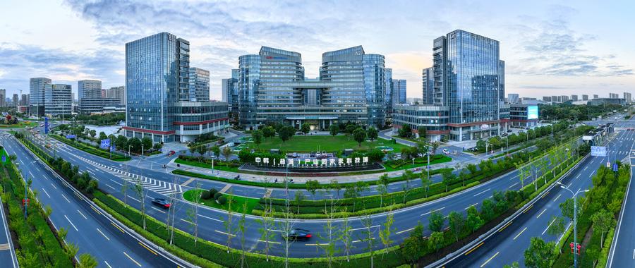中韓(塩城)産業パークの未來科技城。(10月16日、パノラマ寫真、ドローンから、塩城=新華社記者/李博)