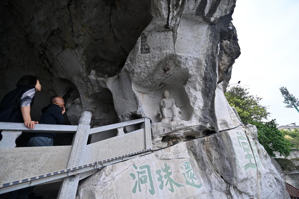 【新華社桂林11月4日】中國広西チワン族自治區桂林市は、奇岩や洞窟が連なる獨特なカルスト地形で知られる。洞窟の中には、上下や左右に複雑に入り組んだ構造を持つものも多く、岩壁に仏像や詩文が刻まれたものもある。壯大な自然景観とともに、歴史と文化の寶庫を形づくっている。