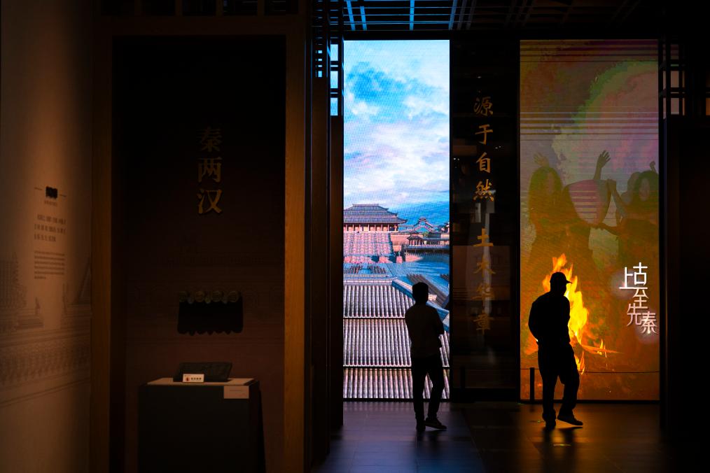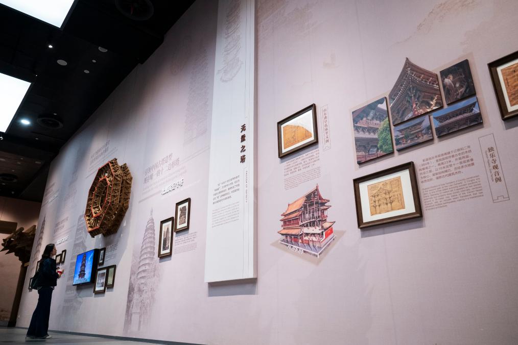 4日、中國建築科技館の古代建築展示ホールを見學する來館者。(武漢=新華社記者/伍志尊)