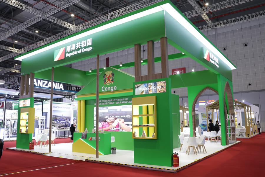 5日、國家総合展に設けられたコンゴ共和國館。(上海=新華社記者/藍建中)