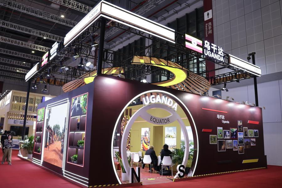 5日、國家総合展に設けられたウガンダ館。(上海=新華社記者/藍建中)