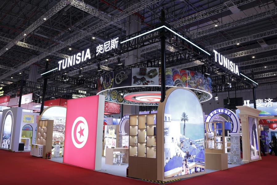 5日、國家総合展に設けられたチュニジア館。(上海=新華社記者/藍建中)