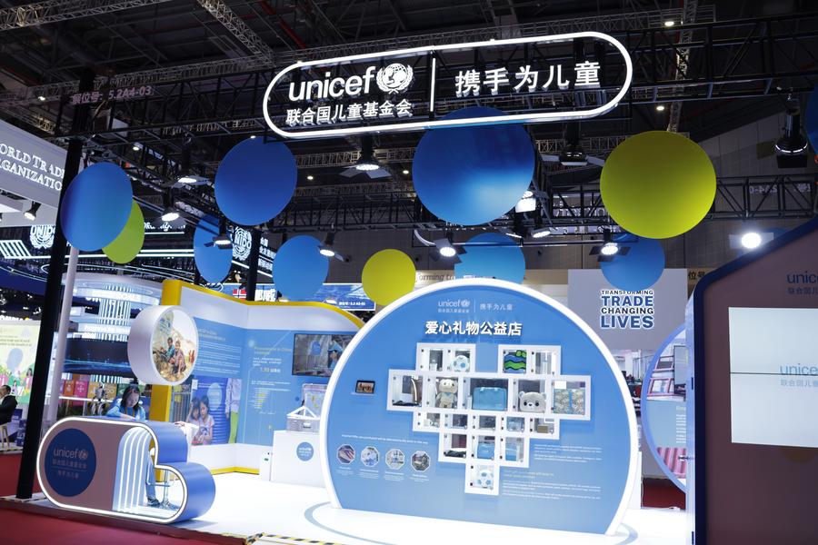 5日、國家総合展に設けられた國連児童基金(ユニセフ)館。(上海=新華社記者/藍建中)
