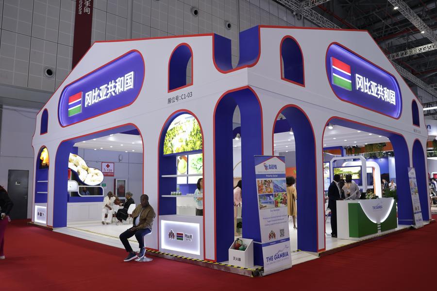 5日、國家総合展に設けられたガンビア館。(上海=新華社記者/藍建中)