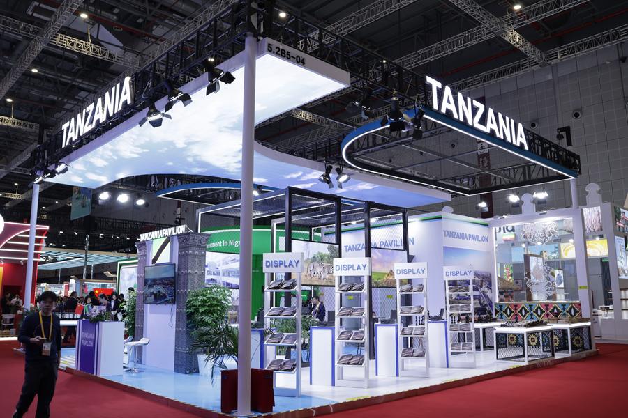 5日、國家総合展に設けられたタンザニア館。(上海=新華社記者/藍建中)