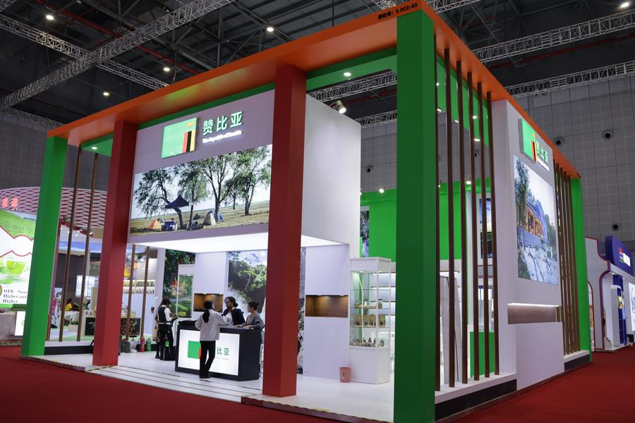 5日、國家総合展に設けられたザンビア館。(上海=新華社記者/藍建中)