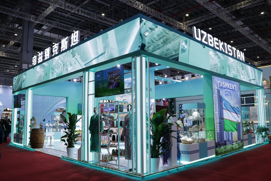 5日、國家総合展に設けられたウズベキスタン館。(上海=新華社記者/藍建中)