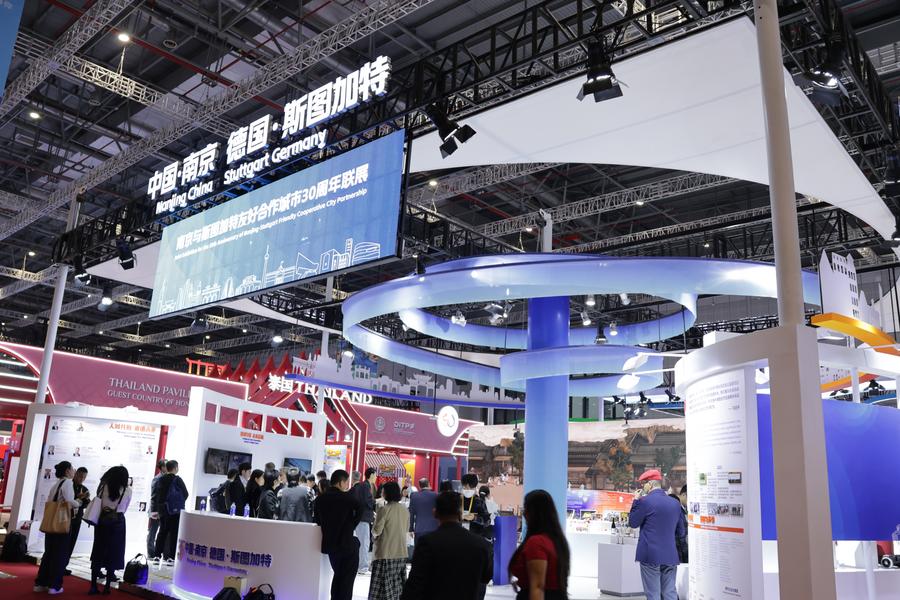 5日、中國・南京とドイツ・シュツットガルト友好協力30周年の合同展示館。(上海=新華社記者/藍建中)