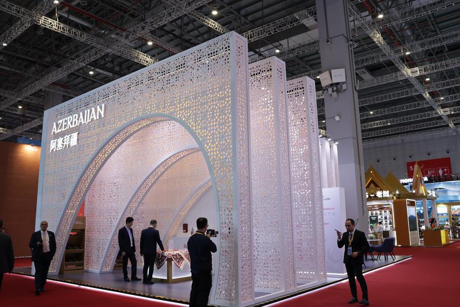 5日、國家総合展に設けられたアゼルバイジャン館。(上海=新華社記者/藍建中)