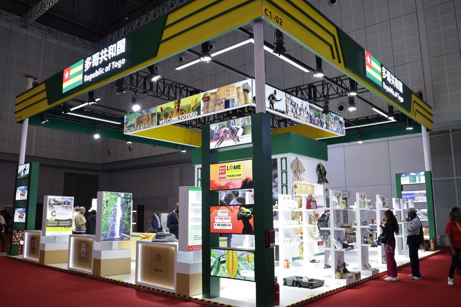 5日、國家総合展に設けられたトーゴ館。(上海=新華社記者/藍建中)