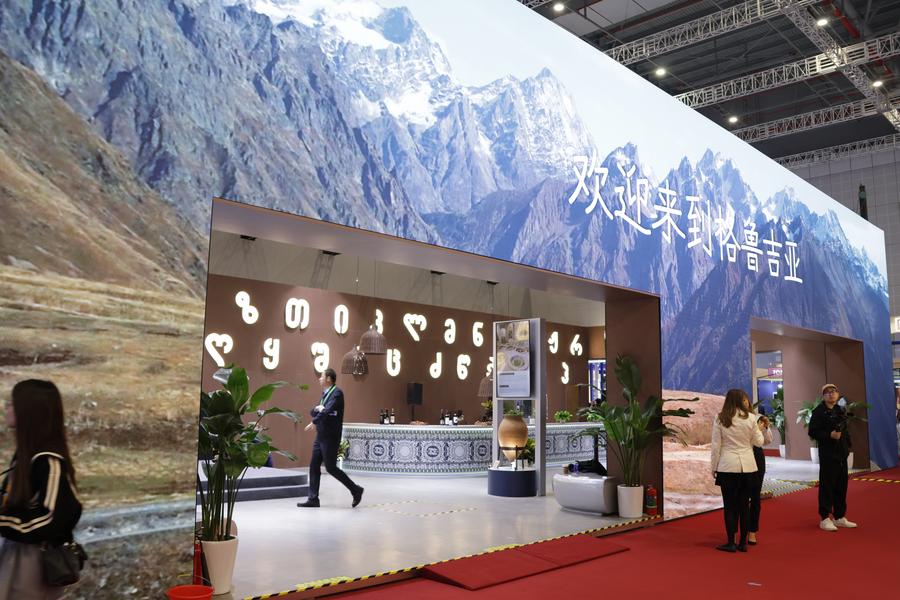 5日、國家総合展に設けられたグルジア館。(上海=新華社記者/藍建中)