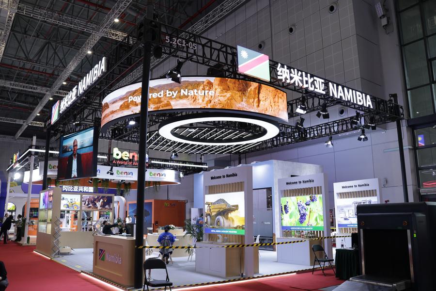 5日、國家総合展に設けられたナミビア館。(上海=新華社記者/藍建中)