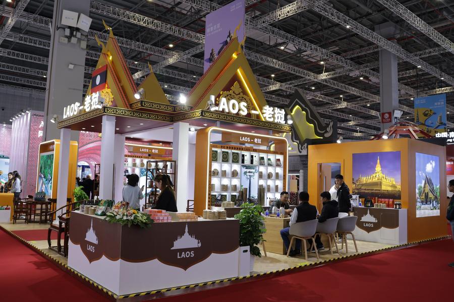 5日、國家総合展に設けられたラオス館。(上海=新華社記者/藍建中)