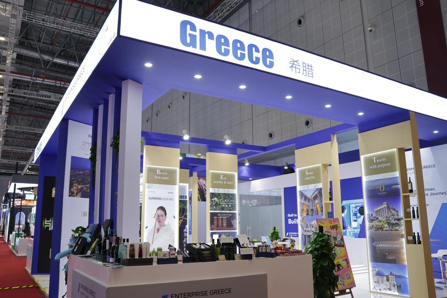 5日、國家総合展に設けられたギリシャ館。(上海=新華社記者/藍建中)