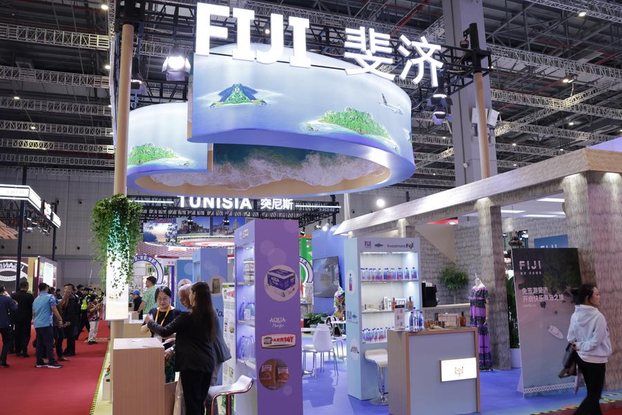 5日、國家総合展に設けられたフィジー館。(上海=新華社記者/藍建中)
