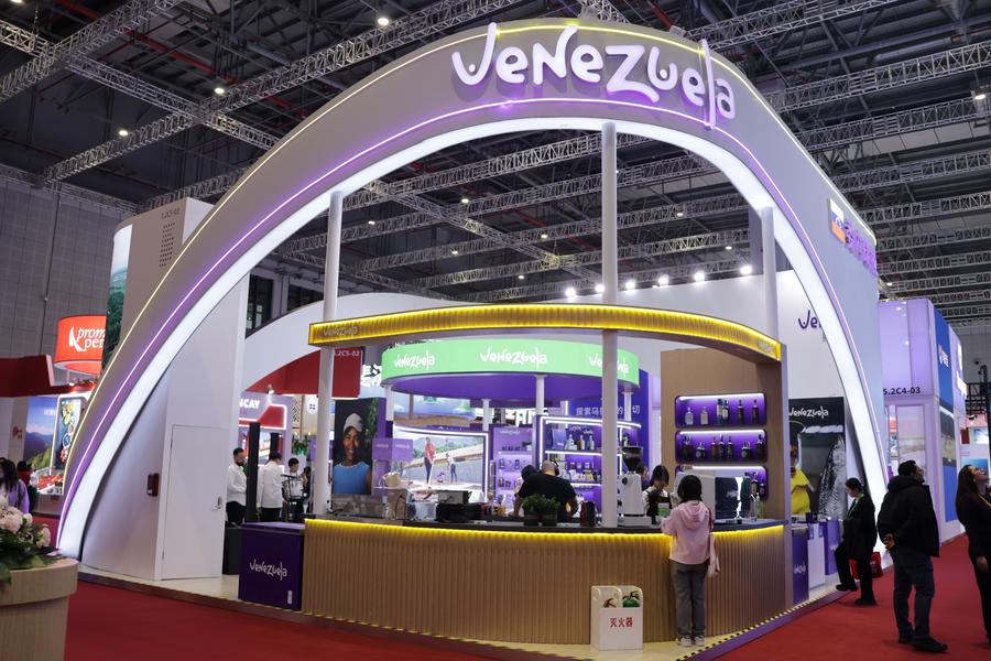 5日、國家総合展に設けられたベネズエラ館。(上海=新華社記者/藍建中)