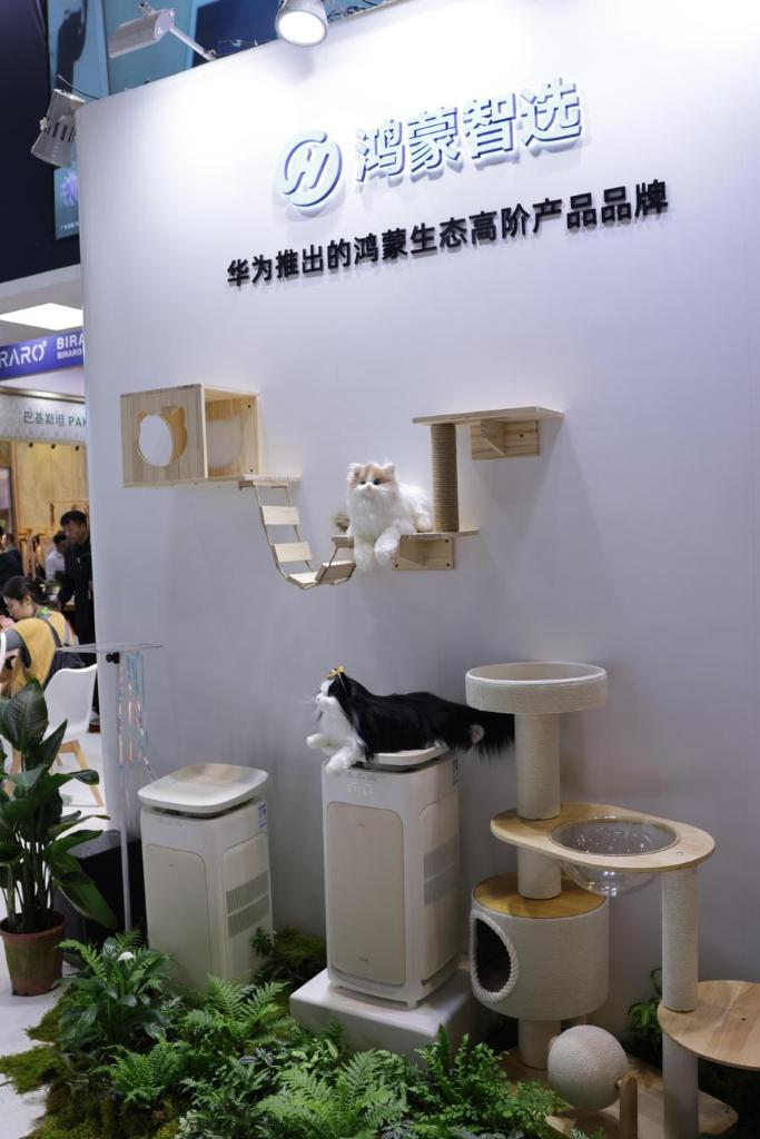 6日、英IAMと中國のファーウェイが共同開発したペット用空気清浄機。臭いや毛を除去できる。(上海=新華社記者/藍建中)