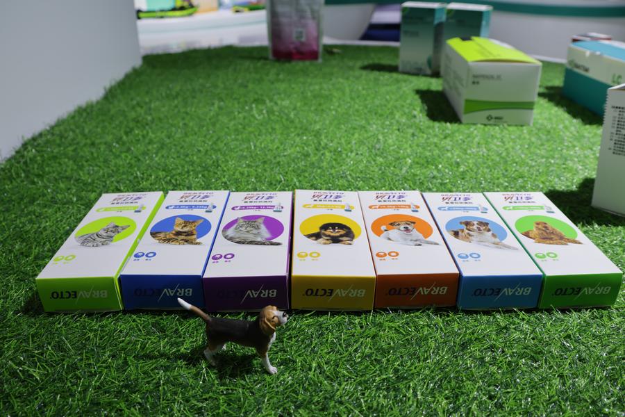 6日、多國籍製薬會社のベーリンガーインゲルハイムが出展したペット醫薬品。(上海=新華社記者/藍建中)