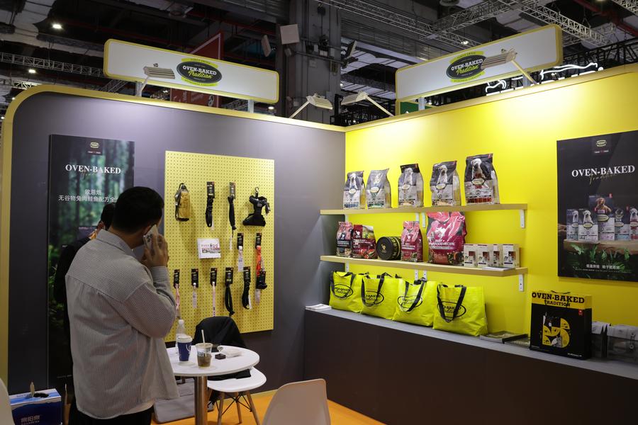 6日、カナダのオーブン・ベイクト・トラディションが出展したペット用グッズ。(上海=新華社記者/藍建中)