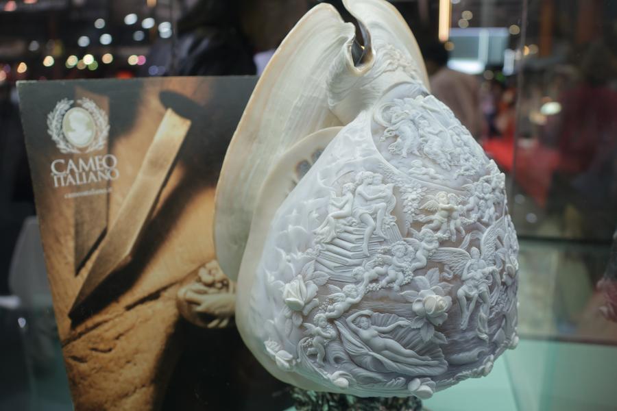 7日、イタリアの貝殻彫刻。(上海=新華社記者/藍建中)