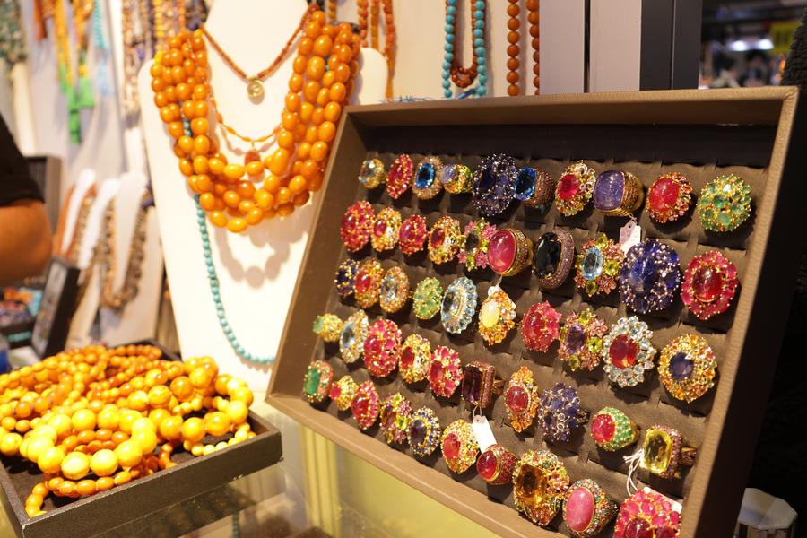 【新華社上海11月9日】中國の上海市で10日まで開かれている第8回中國國際輸入博覧會の消費品展示エリアは、面積8萬4千平方メートルに及び、70以上の國と地域から企業700社以上が出展している。ジュエリーセクションは特に人気が高く、きらめく寶石やなめらかな玉石、輝くダイヤモンドなど、目も眩む逸品が數多く展示された。