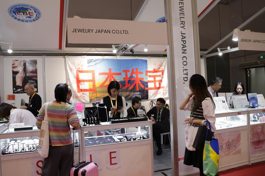 8日、日本のジュエリー展示ブース。(上海=新華社記者/藍建中)