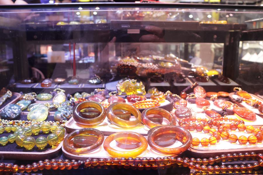 8日、アフガニスタンの琥珀のアクセサリー。(上海=新華社記者/藍建中)