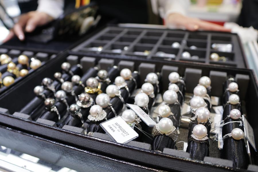 8日、日本のゴールデンパールの指輪。(上海=新華社記者/藍建中)