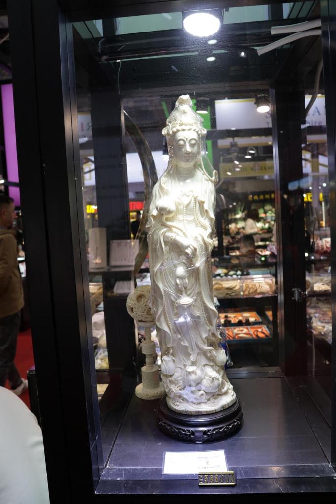7日、ロシアのマンモス牙でできた観音彫像。(上海=新華社記者/藍建中)