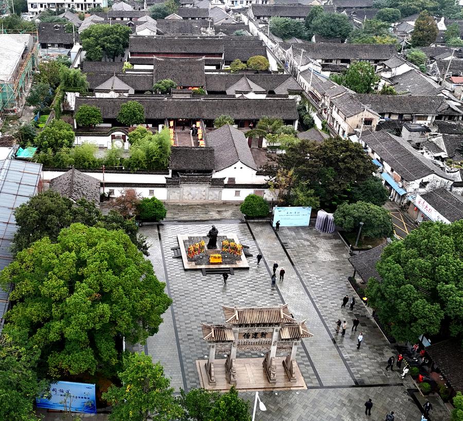 空から見た王陽明舊居。(2024年10月31日、ドローンから、余姚=新華社配信/呉大慶)