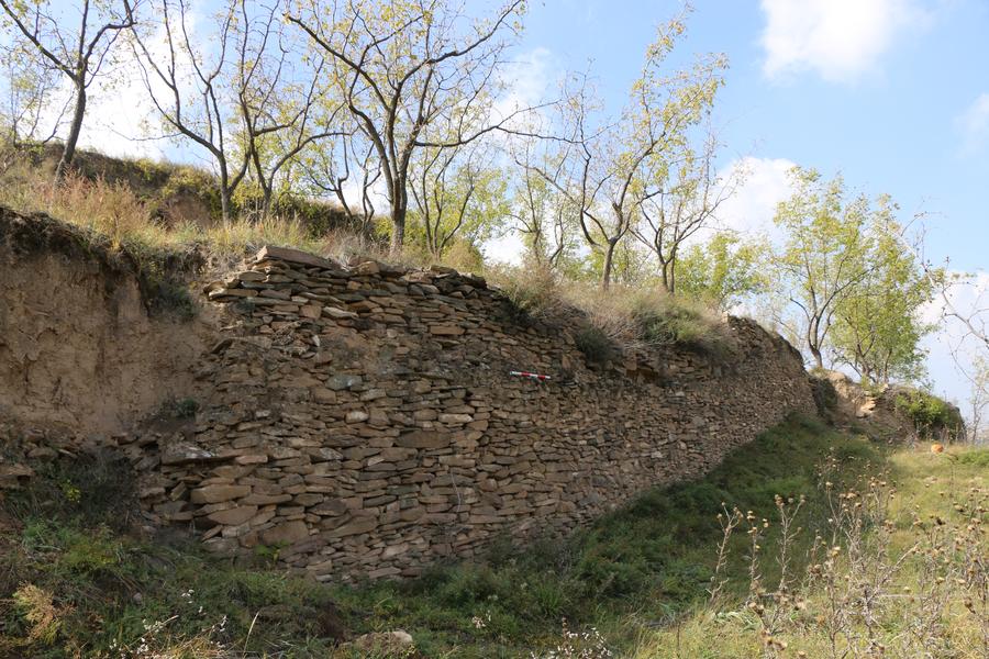 今回の考古學調查で発見された「佳県1號城址」の壁。(西安=新華社配信)