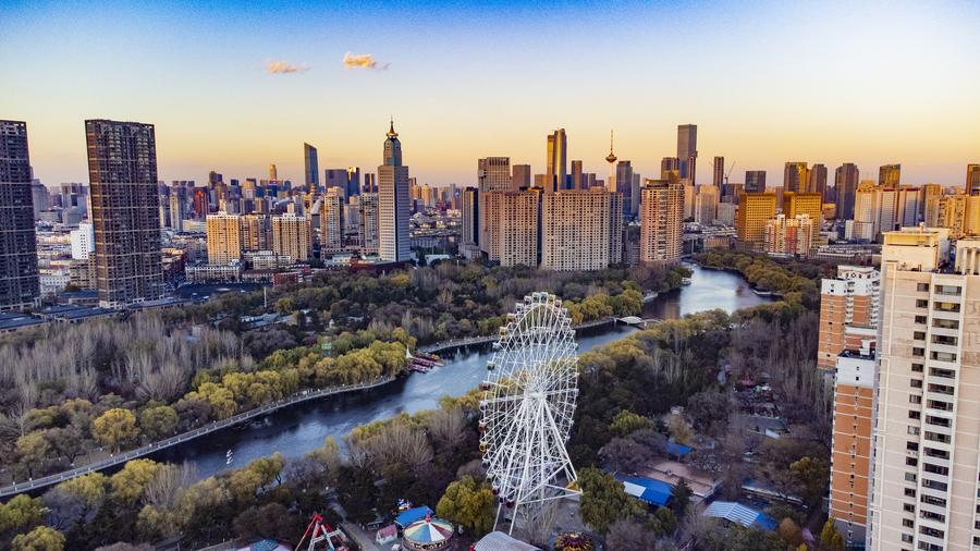 9日、遼寧省瀋陽市和平區の南湖公園。(ドローンから、瀋陽=新華社配信/鄒新江)